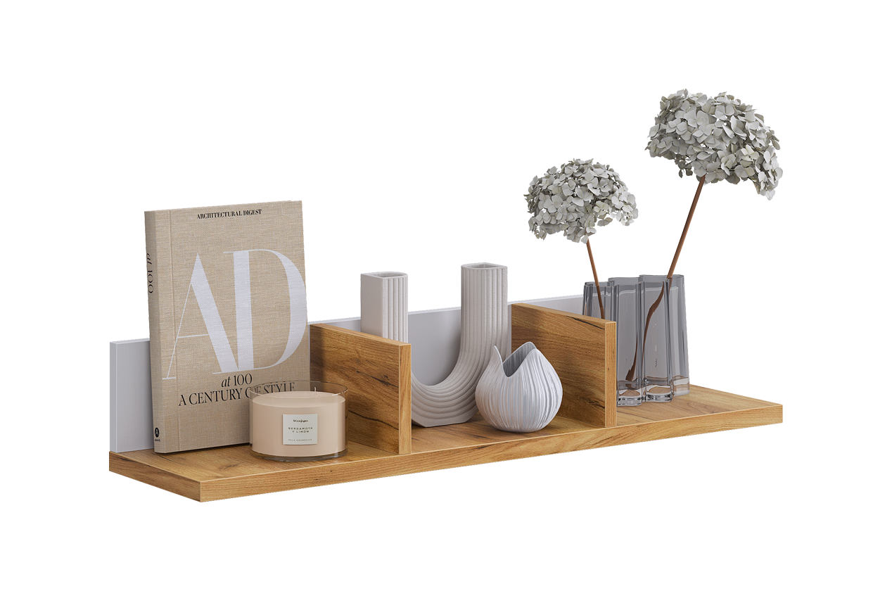 Универсальная открытая полка, предназначенная для организации пространства и демонстрации декора. Её лаконичный дизайн в скандинавском стиле позволяет гармонично вписать её в обстановку гостиной, спальни или прихожей.