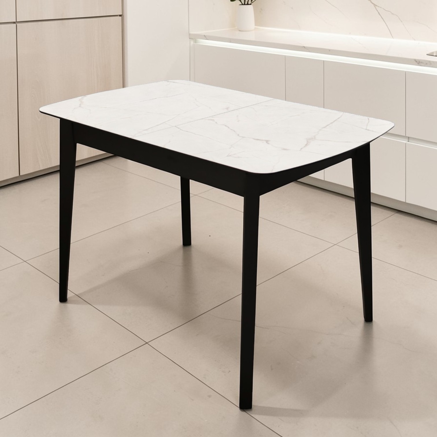 —Стол Ньюман МДФ/пластик, 1100 (1450)*700 Мрамор Монтекатини, опора ZD08 дер/черный