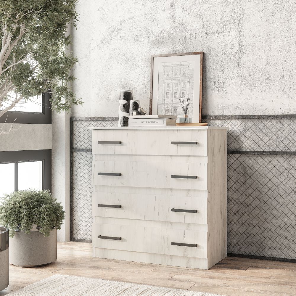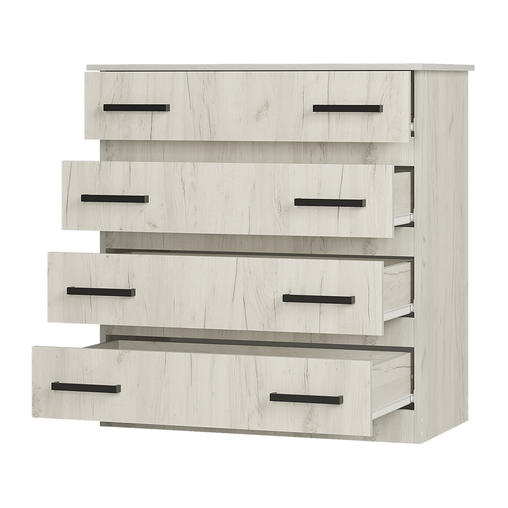 Функциональное решение для хранения вещей в спальне, гостиной или домашнем кабинете. Лаконичный дизайн и нейтральный оттенок «дуб крафт белый» позволяют легко вписать модель в любой интерьер, а строгая геометрия помогает визуально организовать пространство.