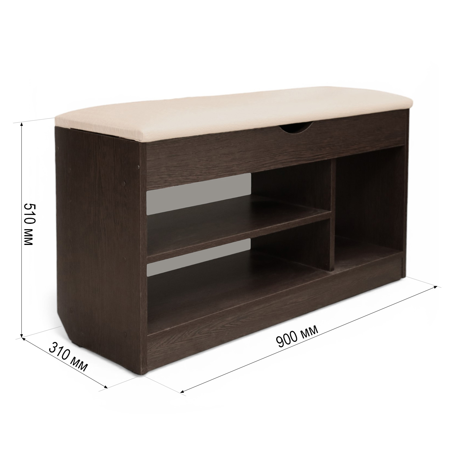 Тумба для обуви БН-196-04 (900*310*510) венге/кожзам крок бежевый