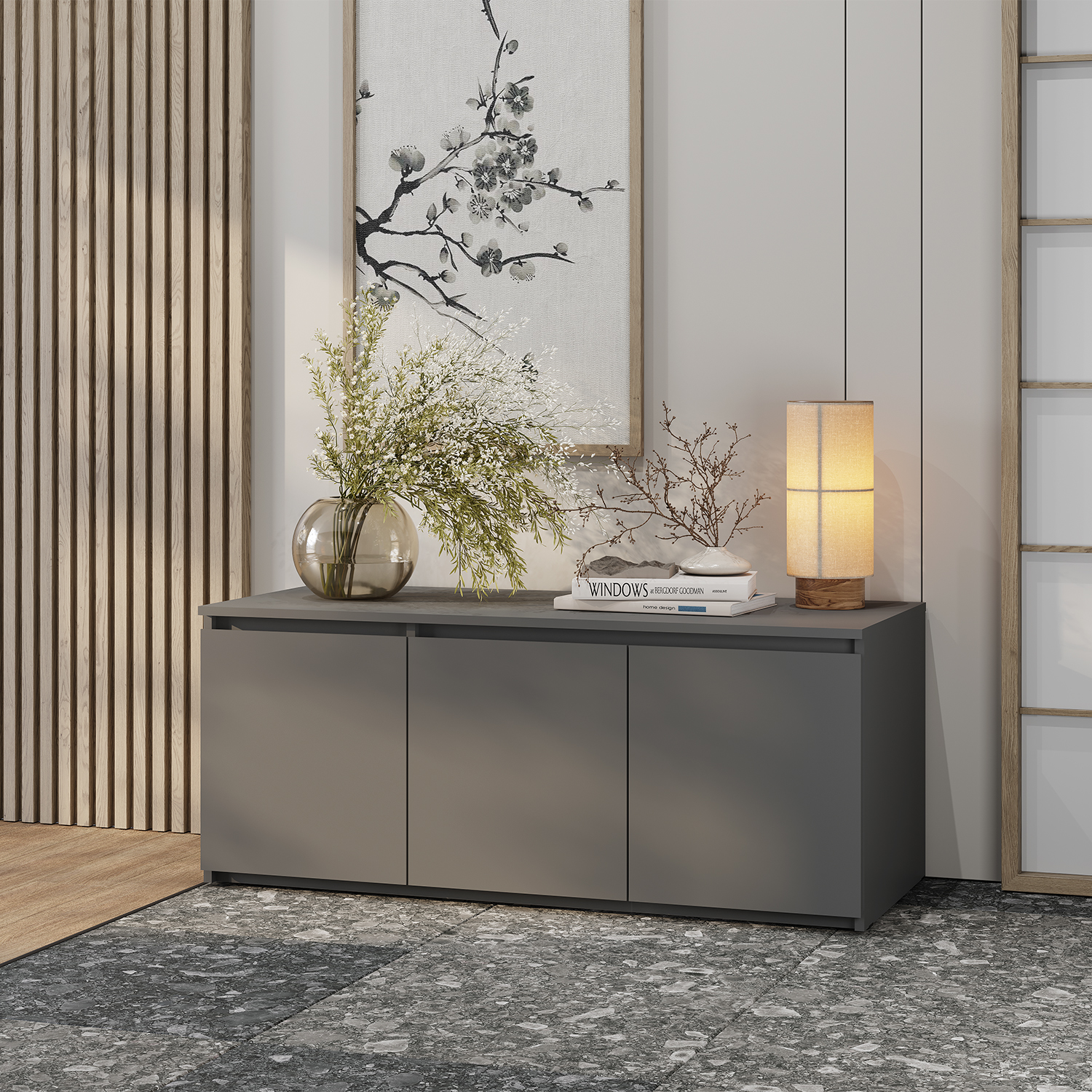 Минималистичная тумба «Симпл» ТБ-18 — это удобное и эстетичное решение для гостиной, спальни или домашнего офиса. Модель разделена на три вместительных отсека с распашными дверцами, где удобно хранить документы, одежду или важные мелочи. Прочная крышка выдерживает нагрузку до 10 кг — разместите на ней книги, предметы декора или настольные светильники. Лаконичный дизайн с интегрированными срезами вместо ручек подчеркивает минимализм коллекции. Глубокий оттенок «графит» станет стильным акцентом любого интерьера.
