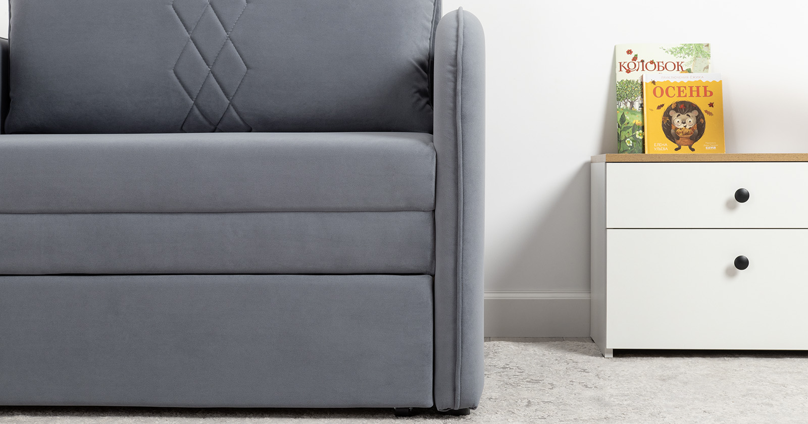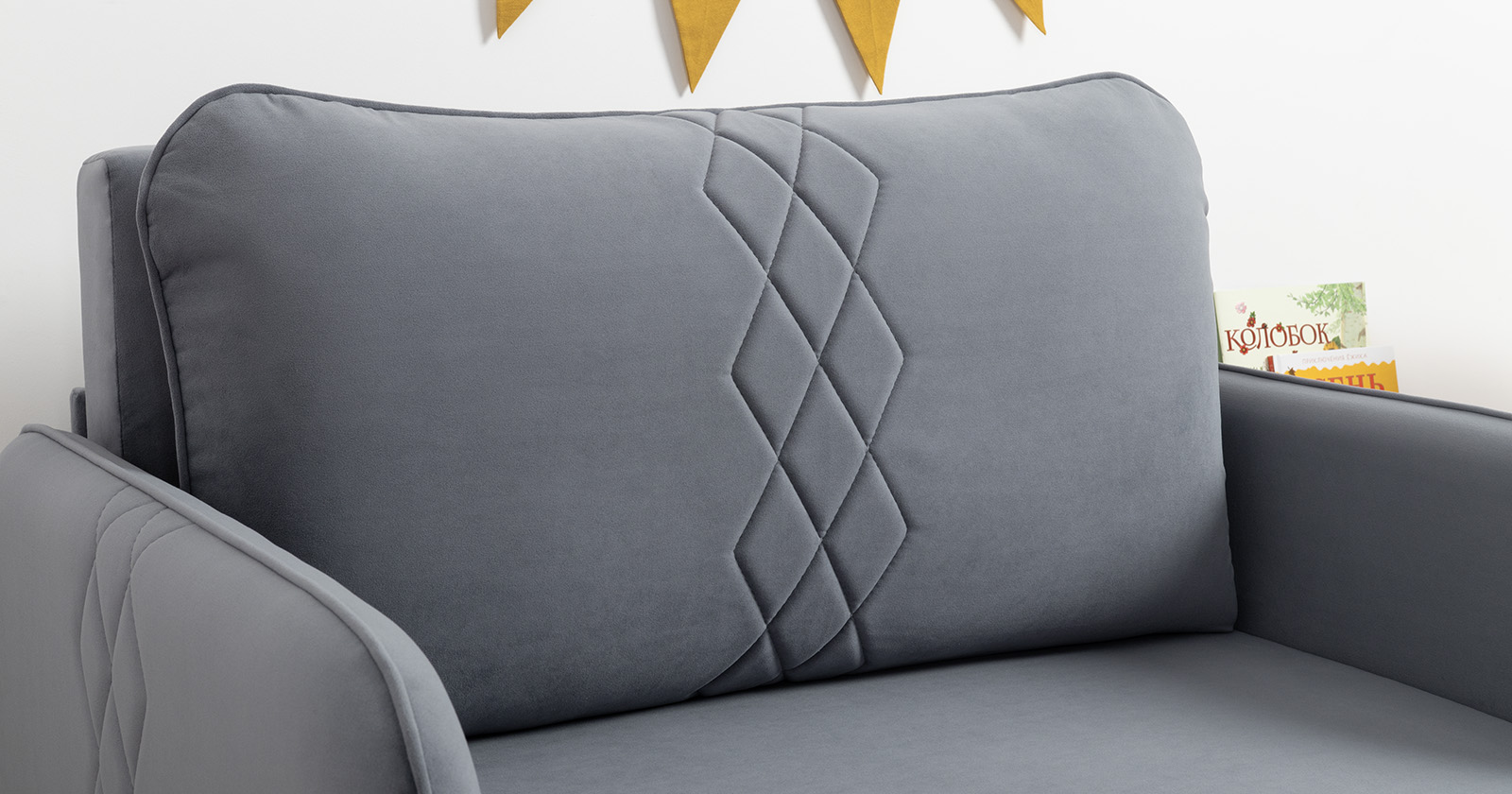 Компактный диван "Вивальди" – стильное решение для детской или гостиной. Этот диван, несмотря на свои скромные габариты, легко превращается в удобное спальное место для детей и подростков. Лаконичный дизайн с декоративной стежкой подчеркивает роскошную фактуру велюра, а компактные размеры позволяют разместить его даже в небольшом пространстве.