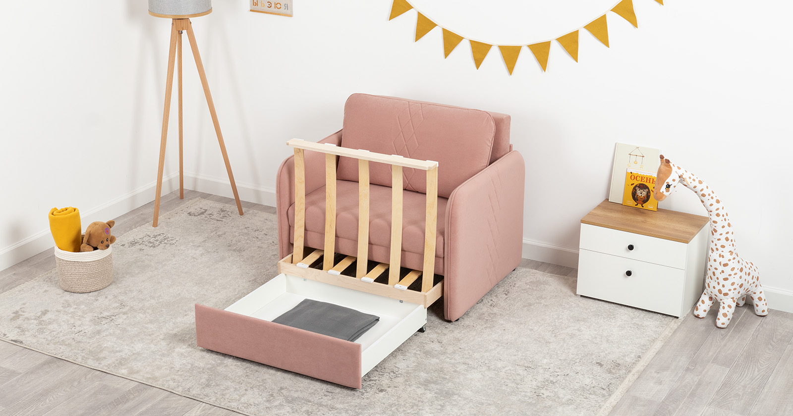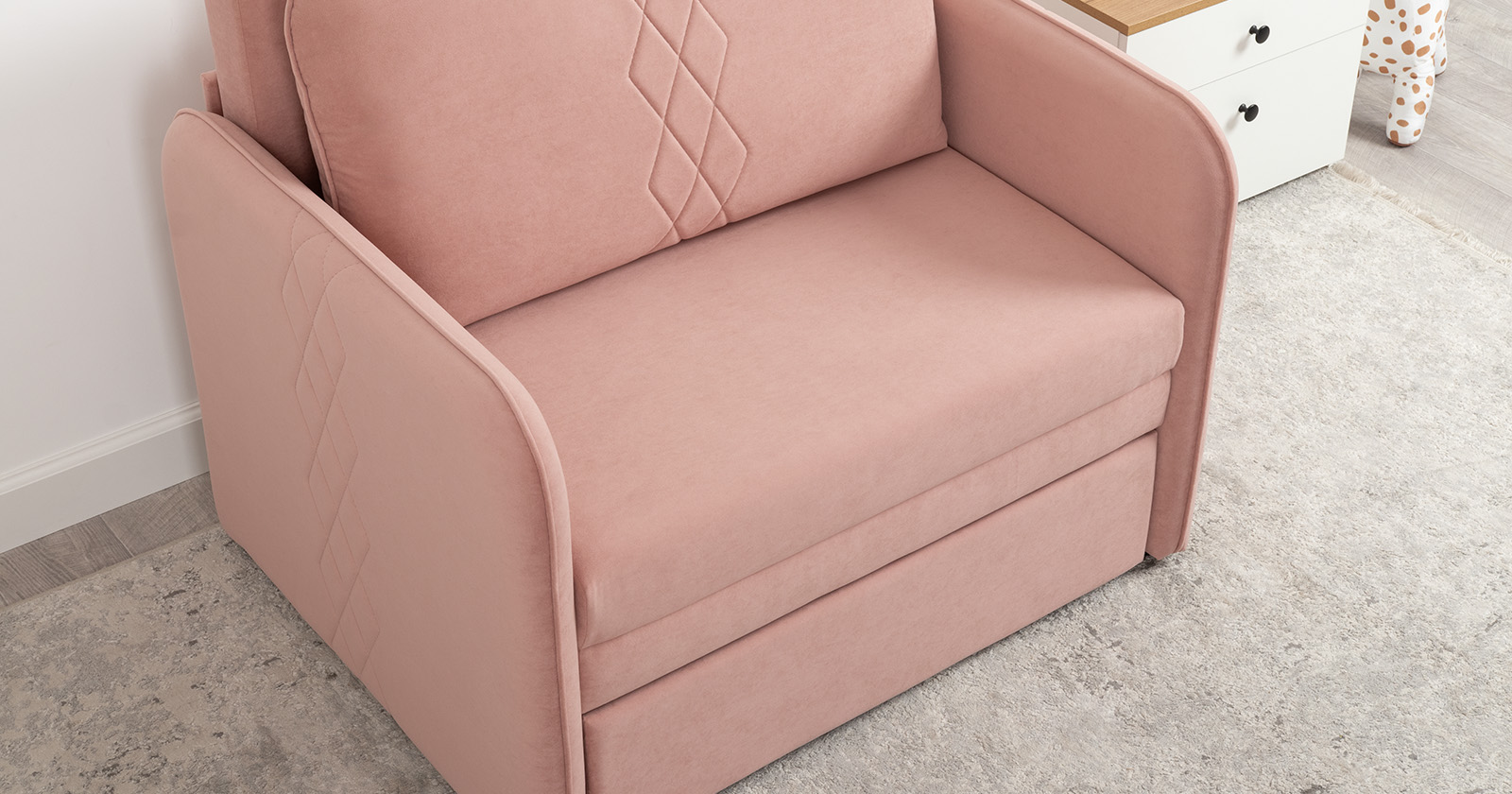 Компактный диван "Вивальди" – стильное решение для детской или гостиной. Этот диван, несмотря на свои скромные габариты, легко превращается в удобное спальное место для детей и подростков. Лаконичный дизайн с декоративной стежкой подчеркивает роскошную фактуру велюра, а компактные размеры позволяют разместить его даже в небольшом пространстве.