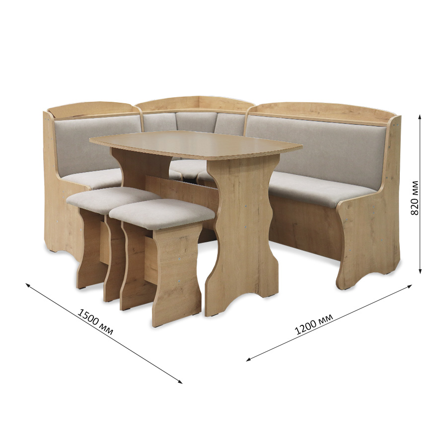 | Габариты обеденной группы | 1500х1200, h820 |